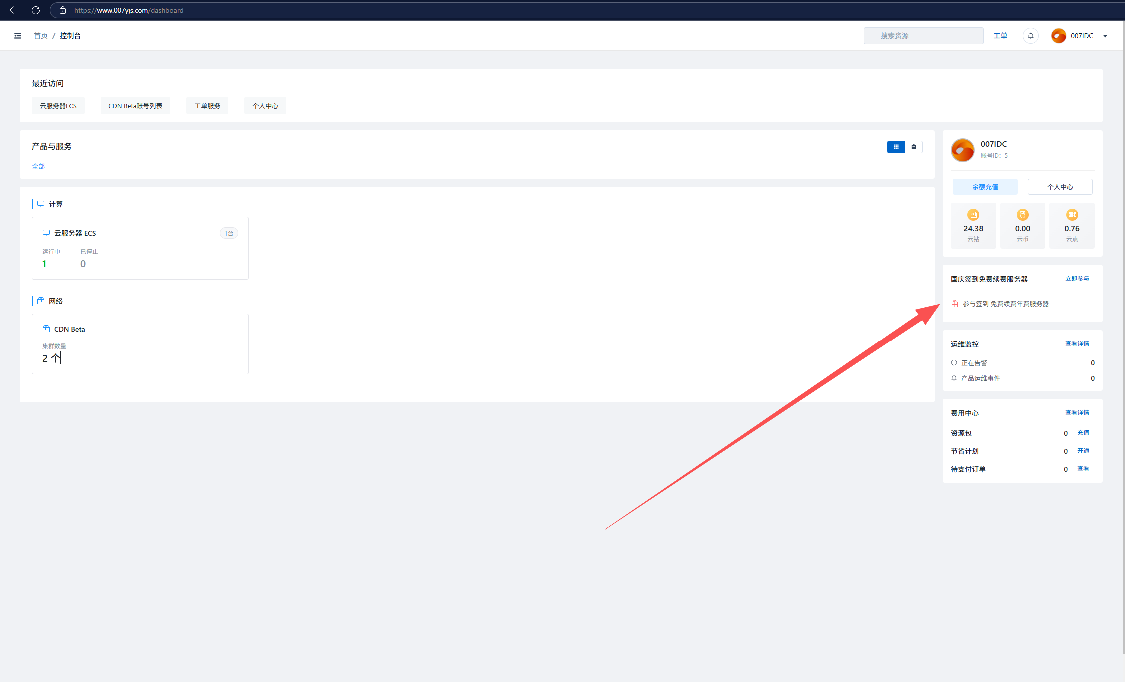 提示1 : 如果沒有續費卷 , 該服務器將被回收并在今年周年慶中免費進行送出